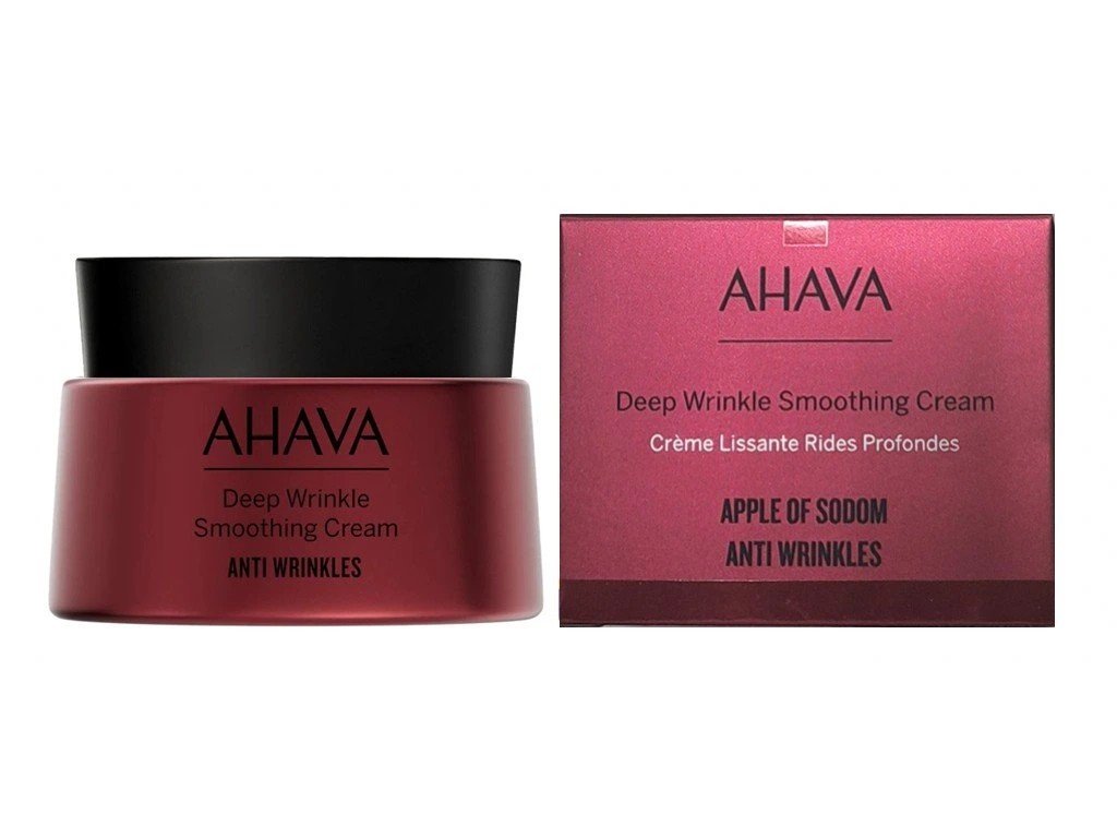Luxusní řada Apple of Sodom je revoluční novinka s jedinečným patentem Apple of Sodom Complex™, který má účinky PŘÍRODNÍHO BOTOXU bez použití injekcí. AHAVA jako jediná kosmetická společnost na světě spojila účinky 21ti Minerálů z Mrtvého moře a zázračných botanických účinků rostliny Apple of Sodom, pro maximální vyhlazení a vyplnění hlubokých vrásek, zpevnění kontur, hloubkovou hydrataci a výživu pokožky. Intenzivní celodenní krém viditelně vyhlazuje a vyplňuje hluboké vrásky, účinně zpevňuje kontury obličeje a má účinky PŘÍRODNÍHO BOTOXU bez použití injekcí. Krém je vhodný pro normální, suchou a zralou pleť.